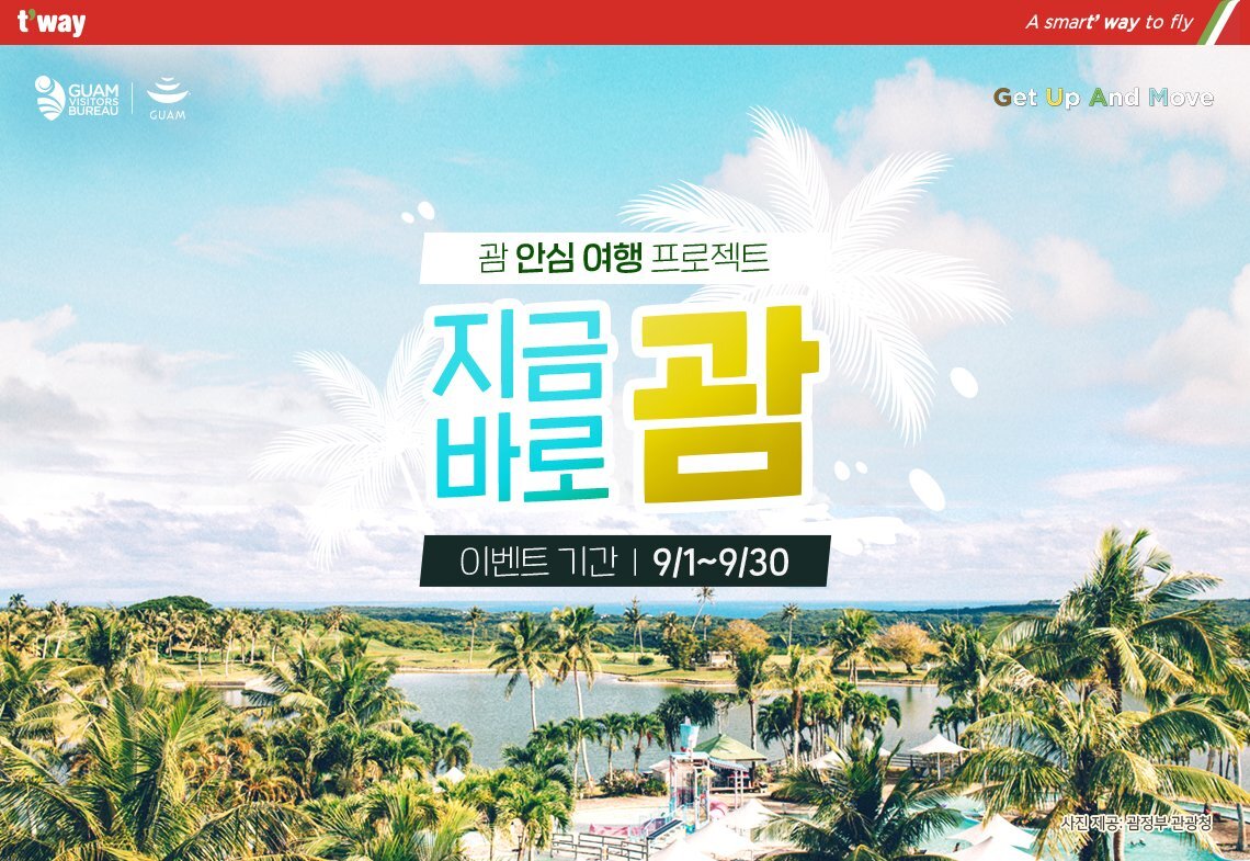 · 티웨이항공 괌노선 6만원 할인쿠폰 + 23kg 수하물 무료 (~09.30)