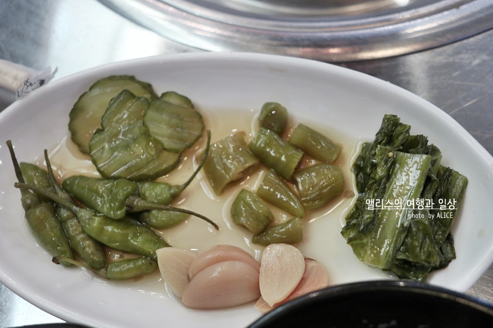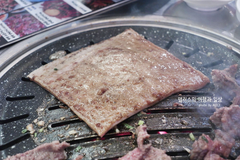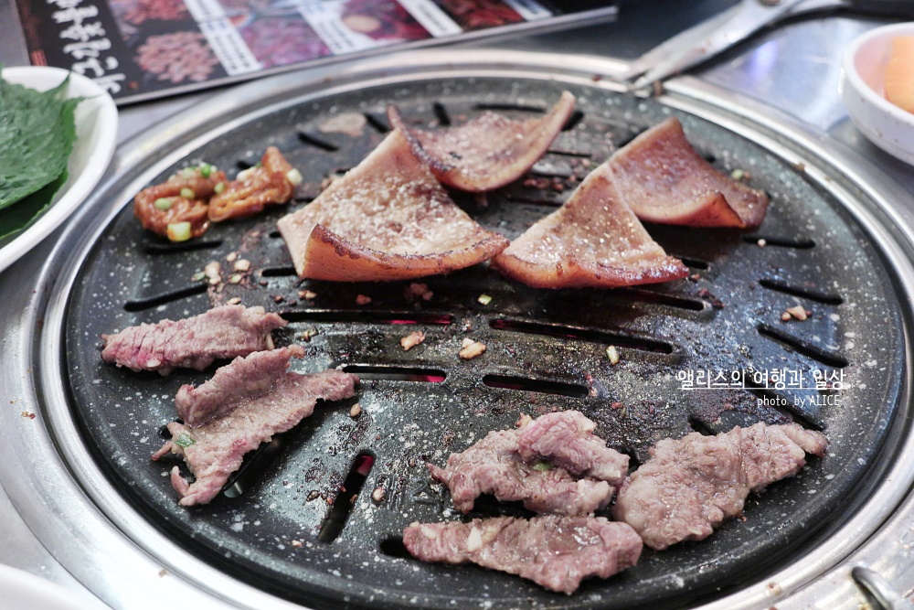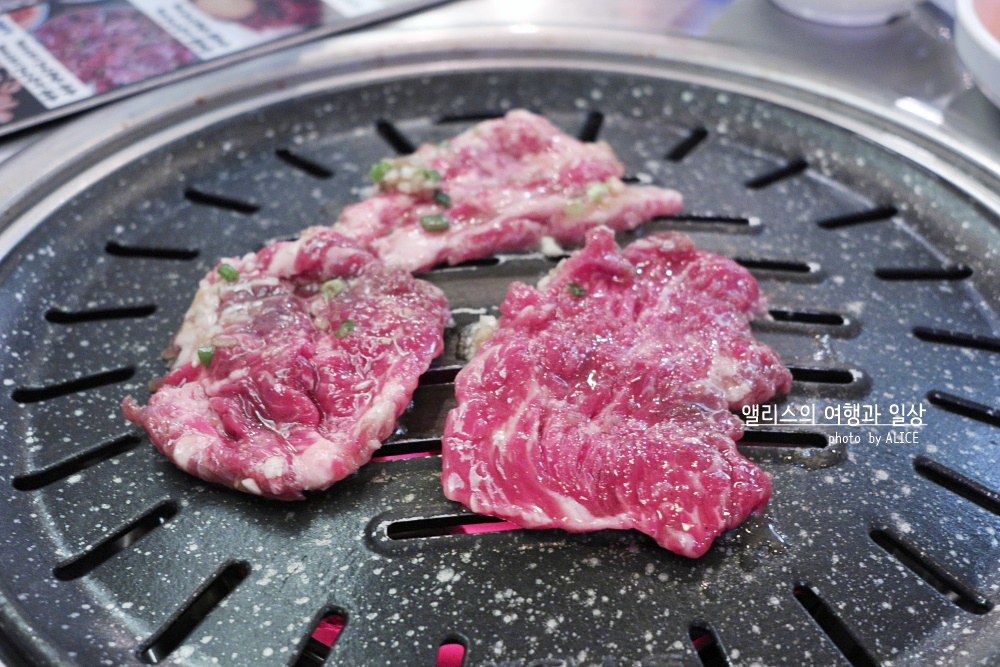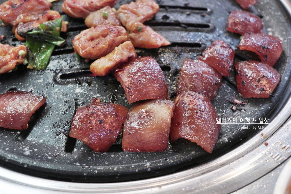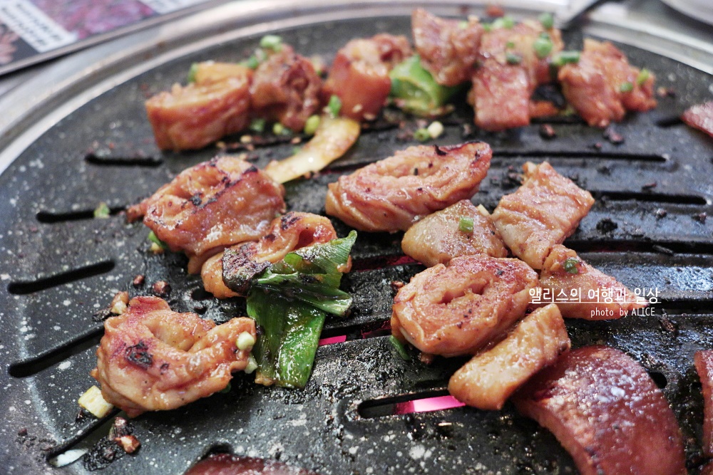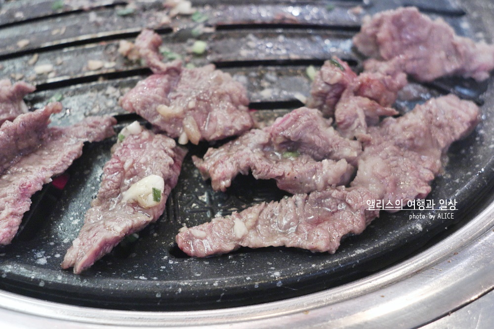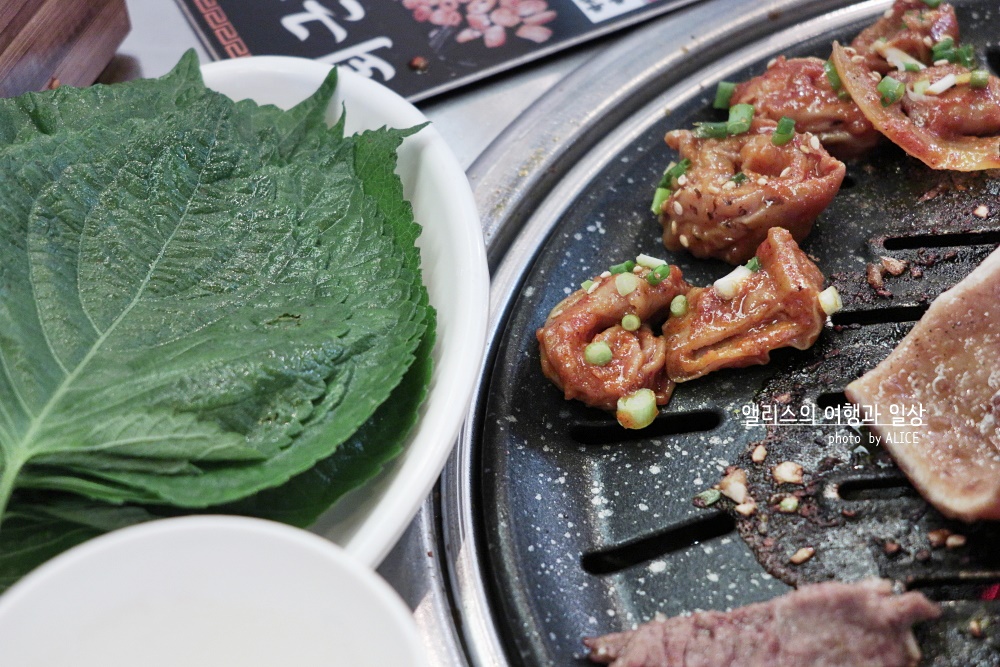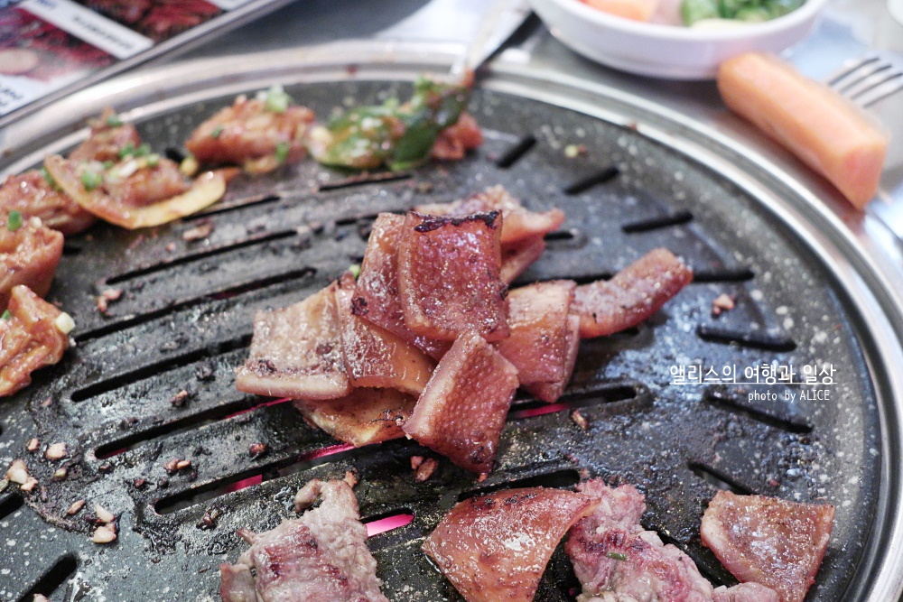 고소한 풍미에 적절히 양념에 잘 재워진 갈비살 양념구이는 달아오른 화로에 빠르게 익어갔다. 갈비살 먹을 때는 정신 차려야 하는 이유가 빠르게 익기 때문에 너무 오래 놔두면 타거나 질겨진다. 적당히 잘 익었을 때 절임채소를 얹어 먹으면 잘 어울린다.