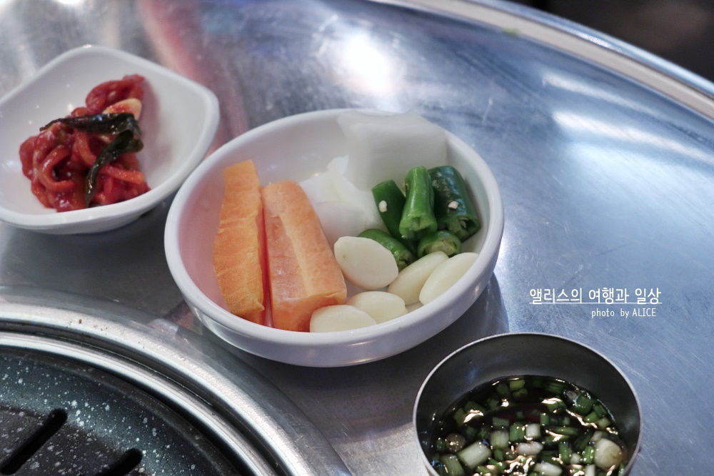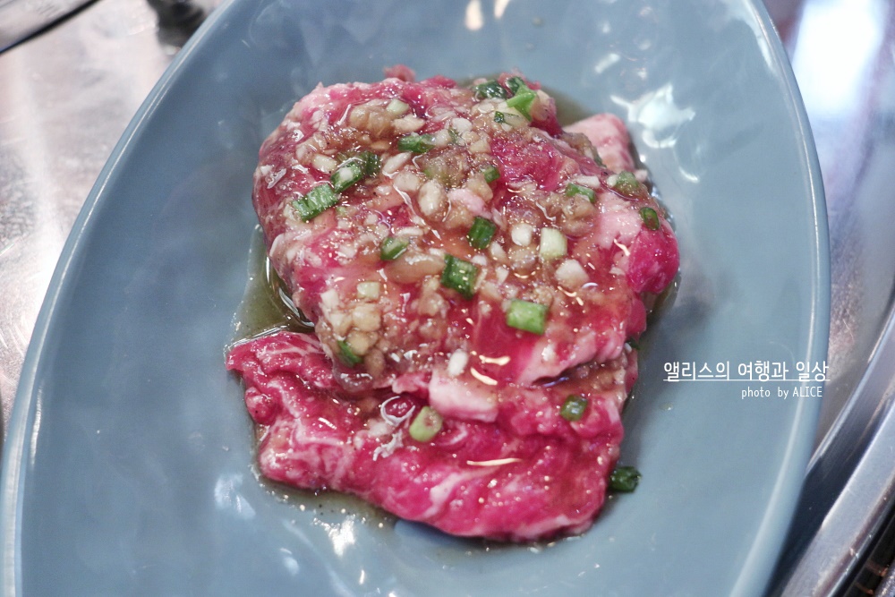 이 식당의 좋은 점은 일부 메뉴는 1인분만 주문이 가능하다는 점이다. 갈비살 양념구이는 1인분 주문이 가능해서 1인분만 주문해서 맛보기!