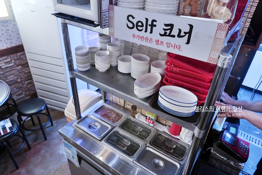 기본 밑반찬 원하면 셀프로 퍼가면 된다.