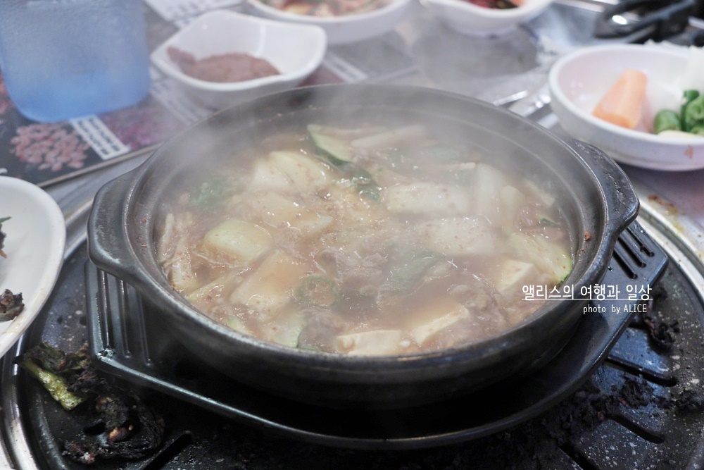 이렇게 고기를 먹고나서 밥을 먹어야 완성이 되는 것이므로 (고기는 밥이 있어야 완성이다.) 된장찌게와 공기밥을 주문했다.