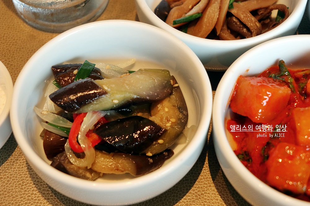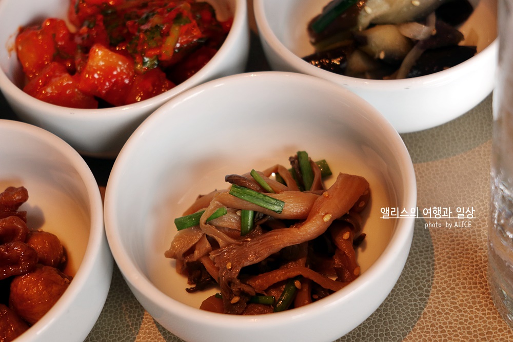 밑반찬이야 매일 바뀌지만, 이날 반찬은 정말 베스트. 간장에 조린 새콤한 버섯, 가지나물, 호두/무화과 조림, 깍두기. 진짜 깍두기 최고였다. 사실 나는 김치를 좋아하지 않아 평소에 거의 먹질 않는데, 여긴 어떻게 만든건지 모르겠으나 깍두기 최고. 내 입맛을 단번에 사로잡았다!