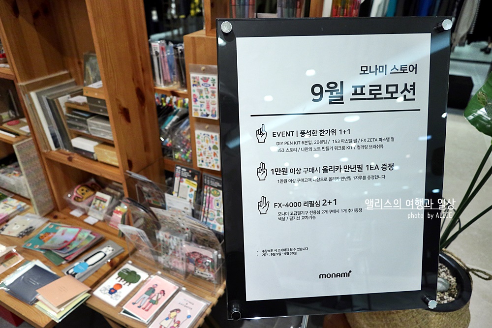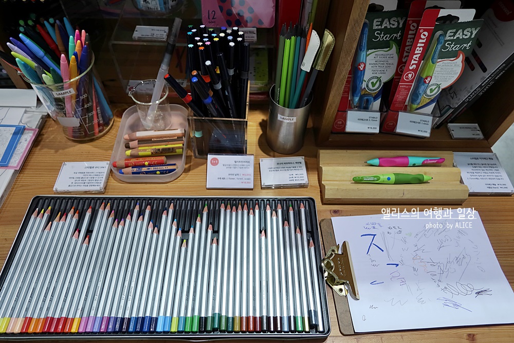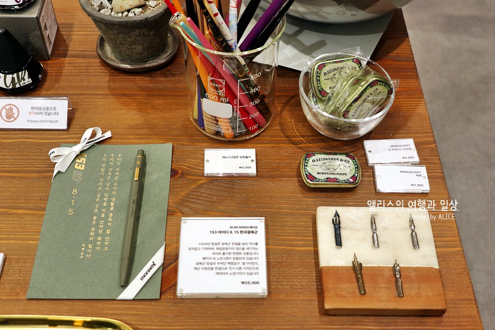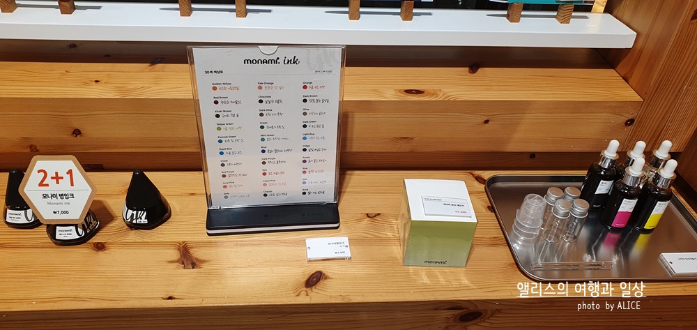 잠시 들렀던 모나미 스토어지만 볼 거리도 많았기에 잠시 들른 시간이 마치 행복한 꿈을 꾸는 시간인 것 같았다. 이건 마치 학창시절로 돌아간 기분이기도! 아주 넓은 매장이 아니고 많은 사람들이 방문하는 곳이기에 이곳에서 오랜 시간을 보낼 수 없지만, 자신만의 잉크색상을 찾고 있다면, 모나미의 다른 문구류가 궁금하다면 한 번 들러보시길!