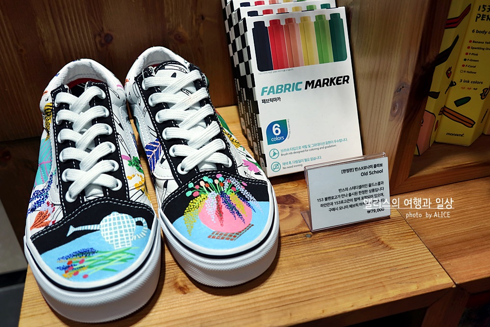 반스의 스테디셀러인 올드스쿨과 모나미 153 볼펜로고가 만난 한정판이다. 이 제품 구매시 모나미 페브익 마커를 증정하니 원하는 디자인대로 만들 수 있다.