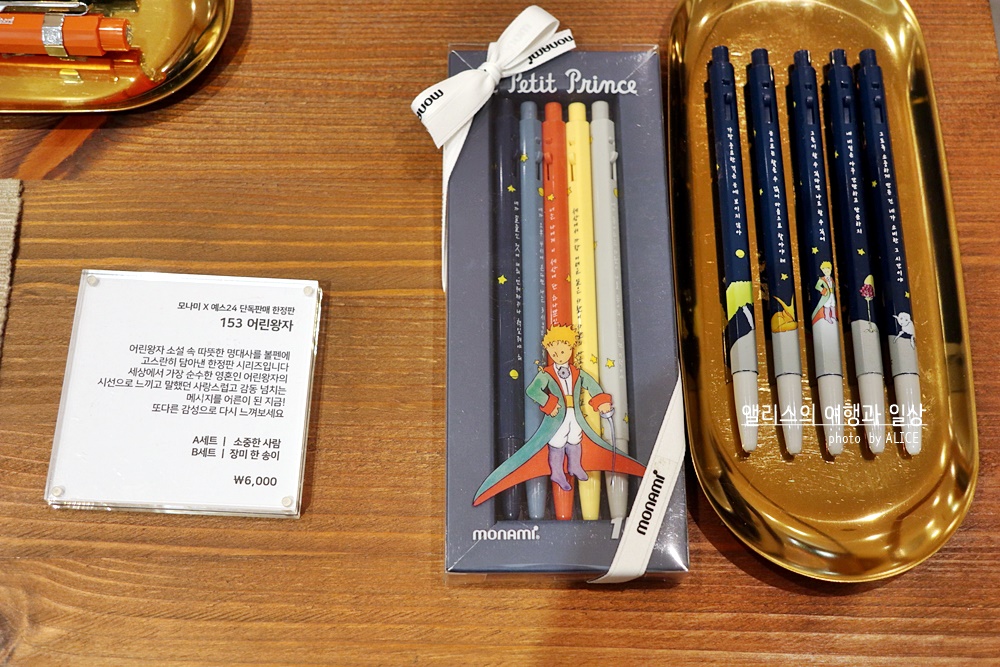 프랑스 작가 생텍쥐베리의 소설, 어린왕자를 모티브로하여 제작된 제품이다. 어린왕자 소설 속 명대사가 볼펜에 고스란히 담겨있따고.