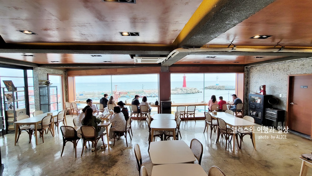 청사포차 2층에 들러 대기를 걸었다. 다행히 오랜 시간 대기하지는 않았다. 주말이지만 회전율이 빨라서 좋았다. 직원의 안내에 따라 3층으로 올라가니 대기하던 2층 장소도 풍경이 좋았는데 한 층 더 올라가니 거리낄 것 없는 청사포 풍경을 그대로 볼 수 있었다. 내부도 그리 좁지 않았고 창가 테이블의 경우 뷰가 정말 좋았지만 사람들이 다닥다닥 붙어있지 않아서 좋았다.