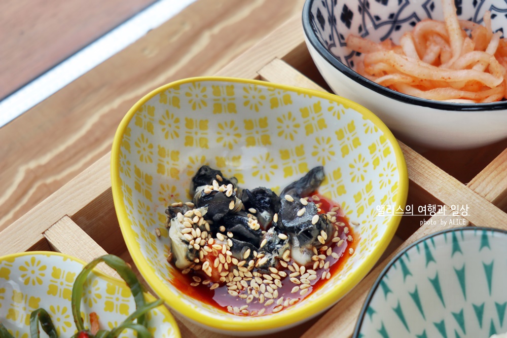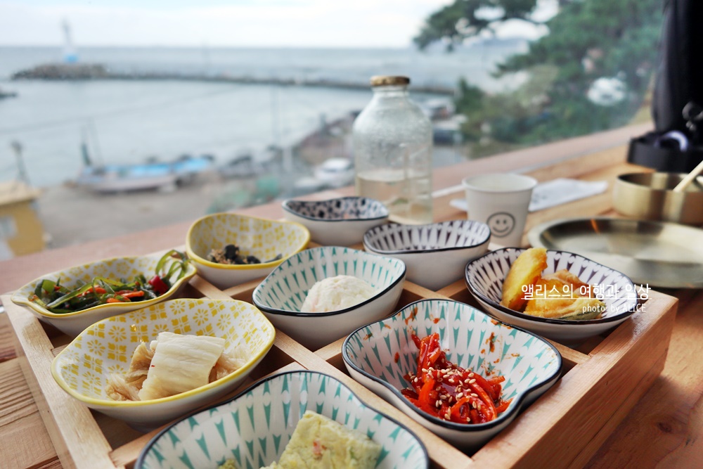 부산이라는 도시가 사실 시골도 아닌데 조금만 나가면 이렇게 한적한 시골 청사포의 느낌을 그대로 뷰로 보면서 식사가 가능하다는 점이 정말 즐거웠다. 여유롭고 한적하고 반찬은 다양하고 예쁘고 맛있기까지.
