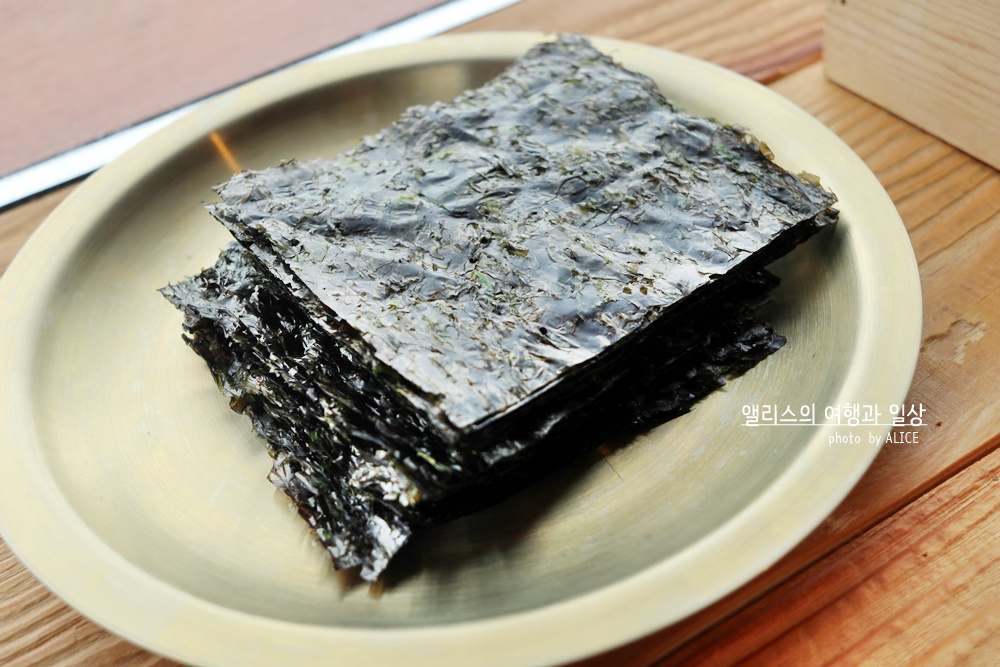 조미하지 않은 생김. 나중에 서빙될 새꼬막 비빔밥을 싸먹으면 아주 맛있는 궁합