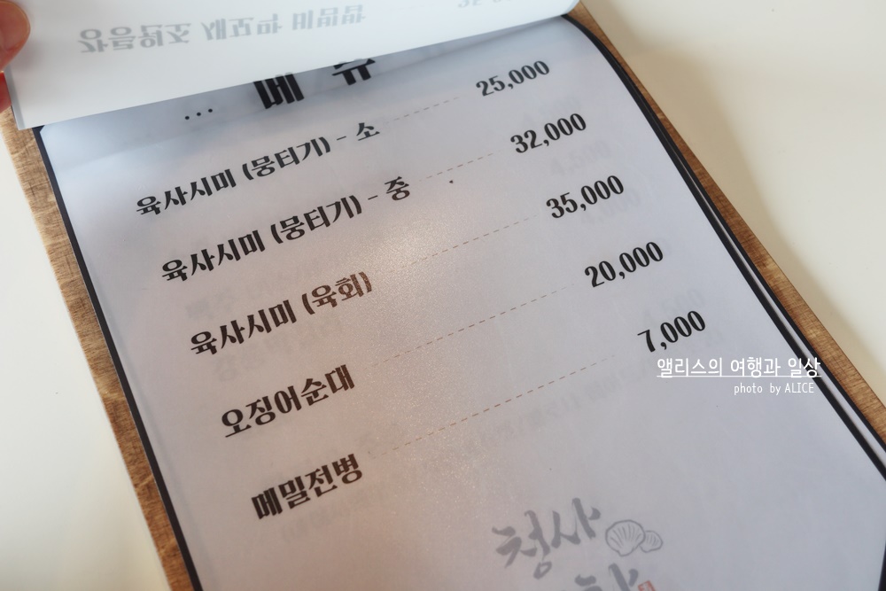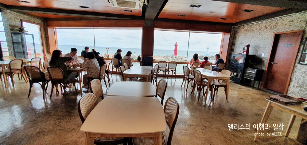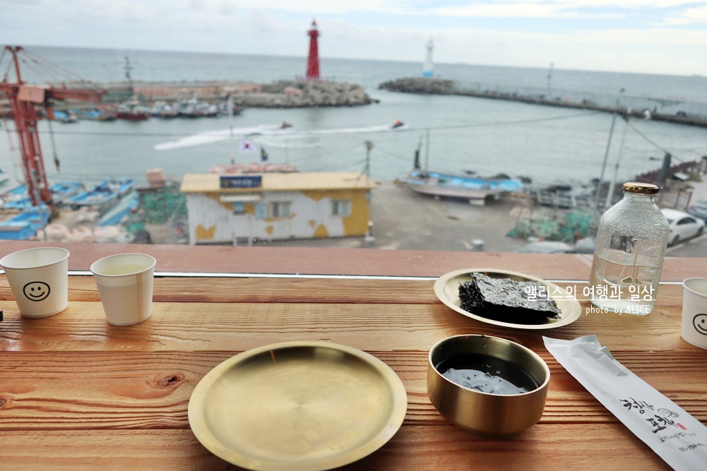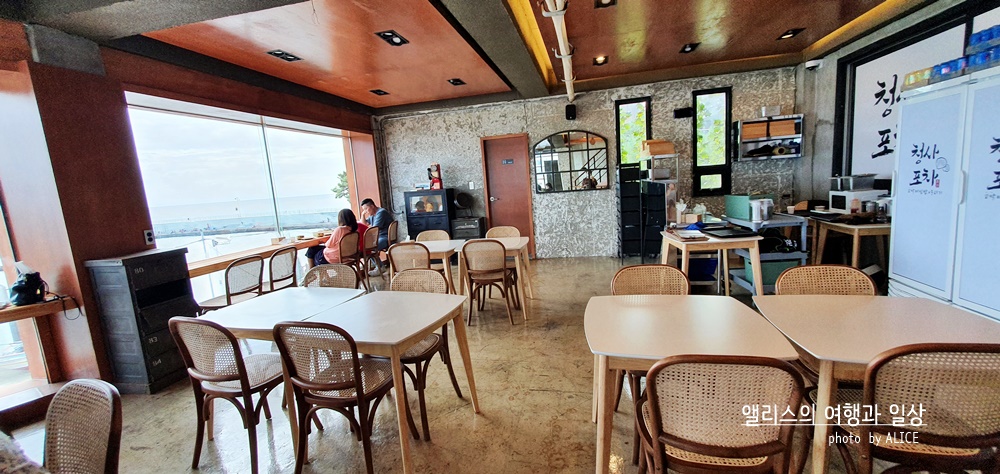 청사포차 2층에 들러 대기를 걸었다. 다행히 오랜 시간 대기하지는 않았다. 주말이지만 회전율이 빨라서 좋았다. 직원의 안내에 따라 3층으로 올라가니 대기하던 2층 장소도 풍경이 좋았는데 한 층 더 올라가니 거리낄 것 없는 청사포 풍경을 그대로 볼 수 있었다. 내부도 그리 좁지 않았고 창가 테이블의 경우 뷰가 정말 좋았지만 사람들이 다닥다닥 붙어있지 않아서 좋았다.