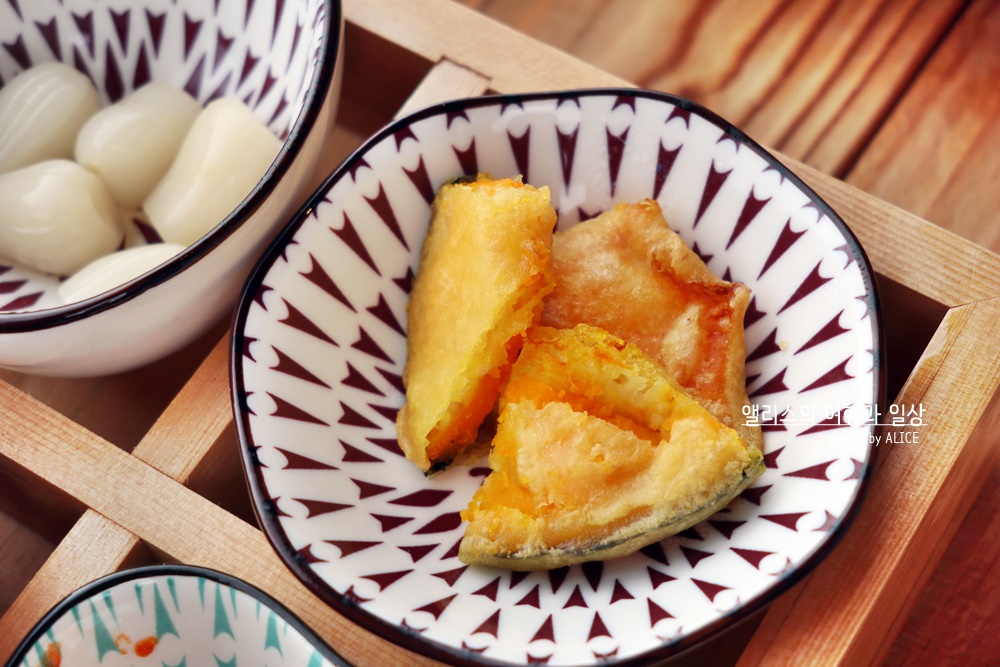 특히 백김치가 정말 센스인 것이, 약간 매콤한 볶음밥이 나올 예정이라 백김치로 깔끔하게 반찬을 더하는 게 조화롭다는 생각이 들었다. (그리고 나는 일반 김치를 좋아하지 않는 편이라;;; 백김치는 사랑함) 단호박 튀김은 반찬이 제공되는 즉시 따뜻할 때 바로 먹길 추천한다. 부드럽고 고소한데 튀김 즉시 먹으니 따뜻해서 무척 좋았다. 반찬 모두 리필 가능하다.