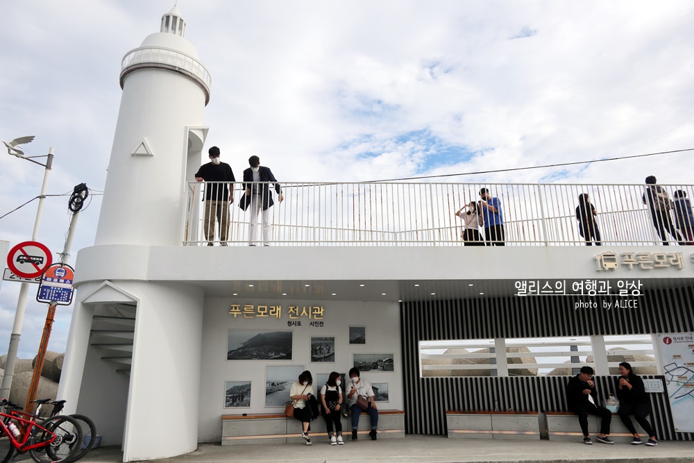 청사포차에서 맛있는 꼬막으로 든든히 점심을 먹고 주변을 거닐었다. 이곳을 거니는 것만으로도 경치가 좋아서 먹고사는 일에 대한 스트레스가 한층 날아가는 기분이었다. 조금 더 여유가 있었다면 시간을 내어 블루라인파크 해변열차를 탑승했지만, 기회는 다음으로. 등대까지 걷기도 하고, 낚시하는 이들의 손맛을 보기도 하고, 푸른모래 전시관에 올라가 풍광을 조망하기도 했다. 대단한 것을 하지 않아도 맛있는 식사에 좋은 뷰에 한적한 항구를 거니는 기분은 역시나 부산 청사포니까 가능한 일 중 하나가 아닐까!
