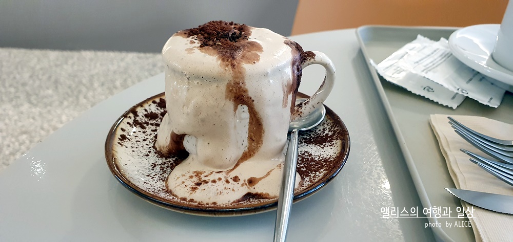 이 더티커피는 찻잔까지 들고 한 번에 마셔야 한다. 그리고 숟가락으로 크림을 긁어(?) 먹으면 된다. 크림이 달달하고 쫀쫀하다. 일반 크림과 확연히 다른 맛. 이 부드러운 크림이 분명 흘러넘치는데 재미나다. 누가 이런 생각을 먼저했을까. 역시 당연한 것을 파괴할 때 희열이 있기도 하고 또 다른 시선을 알려주기도 한다.