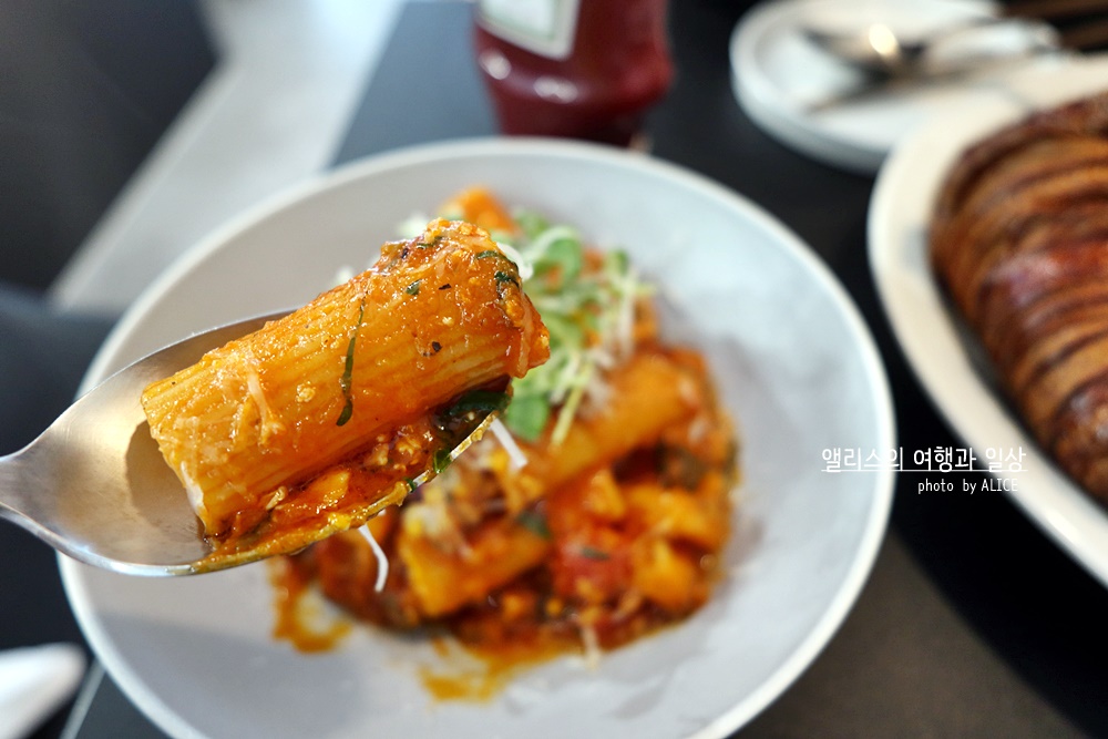 게살과 새우는 많지 않을 거라는 내 생각을 바꾸어주었다. 직접 받아든 파스타에는 탱글한 새우가 소스와 어우러져서 많이 있었고, 게살은 소스에 딱 봐도 잘 섞여있었다. 굵직한 파스타 내부에는 소스가 흥건이 잔뜩 있었다. 그 덕분에 크루아상과 함께 먹었는데, 정말 잘 어울렸다. 만약 플레이트에서 이 메뉴 하나만 주문한다면, 추가로 토스트 식빵이나 크루아상을 더해서 함께 먹길 추천한다. 빵과 정말 잘 어울렸다.