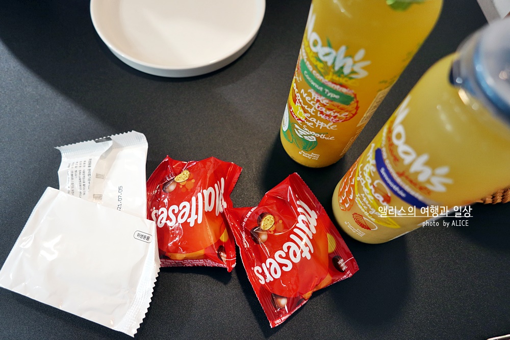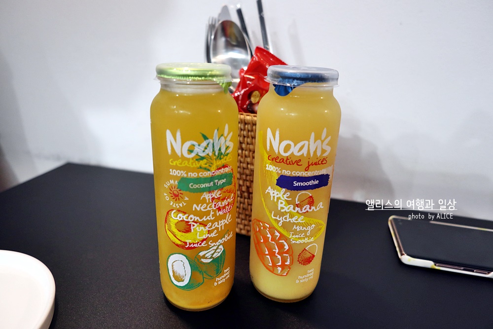 애플바나나와 넥타린 코코넛워터가 도착하고, 몰티즈와 티슈 그리고 수저세트가 도착했다. 기본 세팅이 끝나고 음식이 완성되면 음식 역시 빠르게 서빙된다.