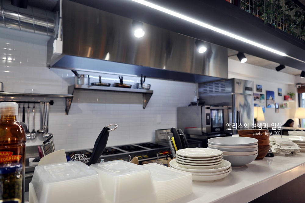 주문을 받으면 그때 음식을 조리하기 시작하는 오픈 키친. 그러니 음식이 만들어지는 동안 그 맛있는 음식냄새를 오롯이 맡을 수 있다. 그 덕분에 더 배고파졌지만! 내 주문이 시작되자마자 바쁘게 돌아가는 주방. 혼자서 주문 받고 음식하고 정리하는 모습은 신기한 모습이었다. 어떻게 저렇게 완벽하게 음식을 만들면서 혼자서 모든 것을 할 수 있을까?! 이 시대의 오너쉐프는 그래서 대단해보인다!