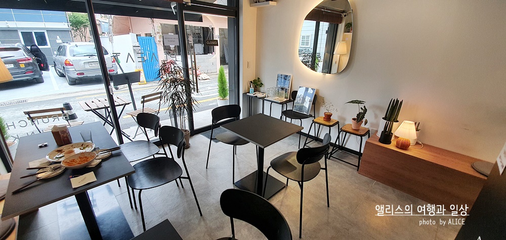 규모는 작은 편이었다. 물론 이정도 규모라면 전포동에서는 흔하게 볼 수 있는 속닥한 맛의 카페/식당이기도 하다. 이런 곳의 특징은 대부분 오너쉐프라는 점. 그래서 취향이 확고한 식당/카페가 많고 그래서 선택이 다양하다. 작은 내부이기에 가장 여유로운 시간대인 오전 오픈 시간에 맞춰가면 브런치의 특징을 그대로 살릴 수 있으니 안성맞춤이다. 나도 11시 오픈에 똭~ 도착. 이미 한 팀이 있긴 했지만, 조용한 곳에서 든든하고 맛있는 아점을 할 생각을 하니 기분이 좋았다.