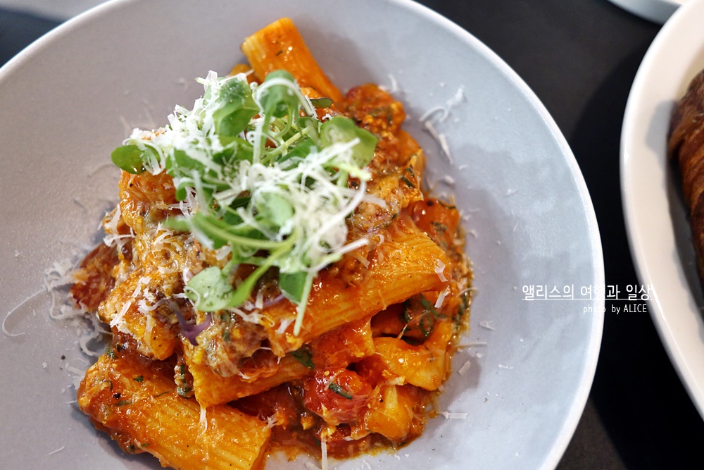 게살과 새우는 많지 않을 거라는 내 생각을 바꾸어주었다. 직접 받아든 파스타에는 탱글한 새우가 소스와 어우러져서 많이 있었고, 게살은 소스에 딱 봐도 잘 섞여있었다. 굵직한 파스타 내부에는 소스가 흥건이 잔뜩 있었다. 그 덕분에 크루아상과 함께 먹었는데, 정말 잘 어울렸다. 만약 플레이트에서 이 메뉴 하나만 주문한다면, 추가로 토스트 식빵이나 크루아상을 더해서 함께 먹길 추천한다. 빵과 정말 잘 어울렸다.