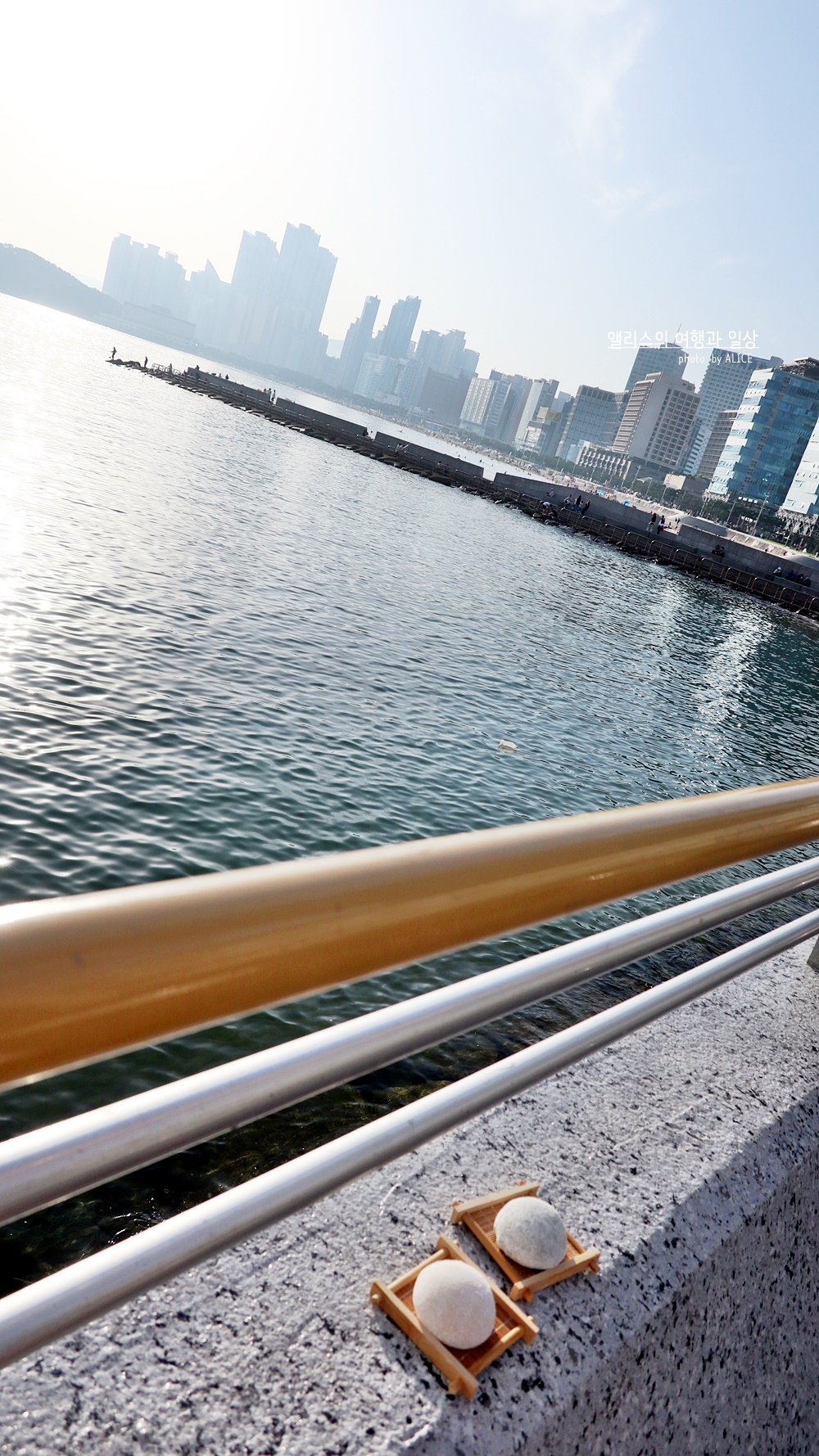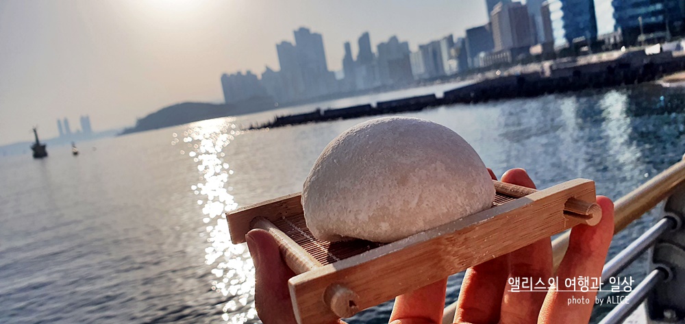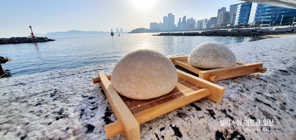 딱히 편하게 먹을 장소가 없으니 빠르게 걸어가서 해운대 백사장에 걸터앉아서 먹어도 좋고, 이렇게 가까운 바다에서 먹어도 좋다. 푸른 바다를 배경으로 달콤쫄깃한 찰떡아이스크림을 먹는 것은 재미있는 경험이자 기분좋은 경험이었다. 진짜 바다 배경으로 꼭 드시길.