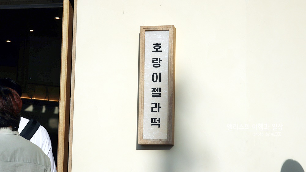 입장하자마자 계산대에서 주문하면 주문영수증을 받는다. 이 영수증을 호랑이젤라떡을 만들어주시는 분에게 보여주면 주문한 호랑이젤라떡을 만들어주신다. 시스템 초 간단. 그렇게 받은 호랑이젤라떡을 챙겨 밖으로 나오면 된다. 내부에서는 시식공간이 없기 때문이다.