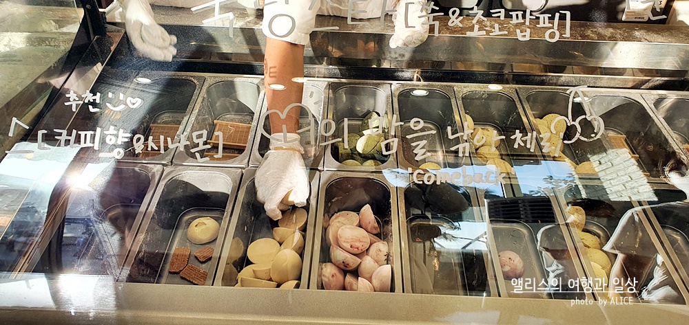 아! 호랑이젤라떡을 나 처럼 4개 주문한다면, 그런데 사람이 나 포함 2명이라면 2개 먼저 들어주신다. 그리고 다 먹고 나면 또 다시 2개를 만들어주시는데, 이유인즉슨, 젤라또는 30초가 넘어가면 요즘 날씨에 급격하게 녹기 때문이다. 미리 4개 만들었다가 먹는 시간에 다른 게 녹아버리면 가장 맛있는 상태를 유지할 수 없으니 그렇게 제공하니 참고하시길!