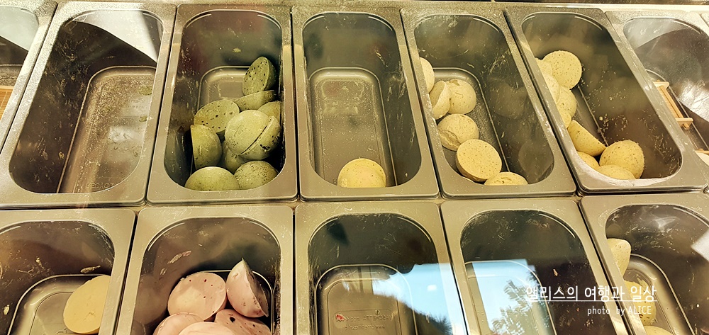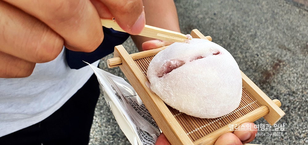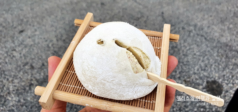 이게 우리에게 익슥한 찰떡아이스의 고급버전이다. 쑥으로 만든 것이라 쑥맛이 나는 게 당연한데 여기에 파핑초코가 들어있어서 씹을 때마다 톡톡 터지는 것이 인상적이다. 물론 내 취향은 이 파핑초코가 없는 게 더 좋지만, 재미난 식감인 것은 확실해 아이들이 좋아하지 않을까 싶다!