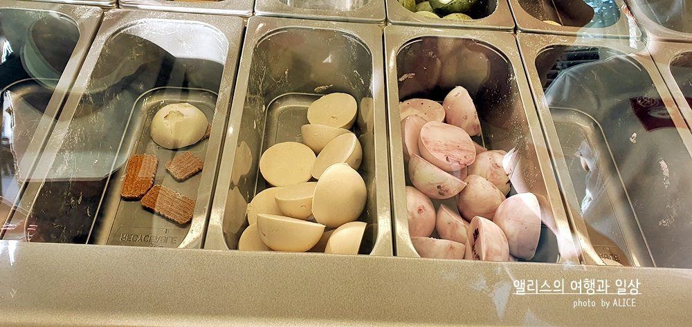 설명만 봐서는 그냥 쿠키맛이라고 되어있는데, 이게 실제로는 굉장히 부들러운 카페라떼에 시나몬을 더한 느낌이다. 물론 아이스크림의 단맛이 더해지면서 적당히 깔끔하면서 달콤한 디저트로 훅 변신한 느낌이다. 내 입맛에는 구운 피스타치오 다음으로 이게 가장 맛있었다.