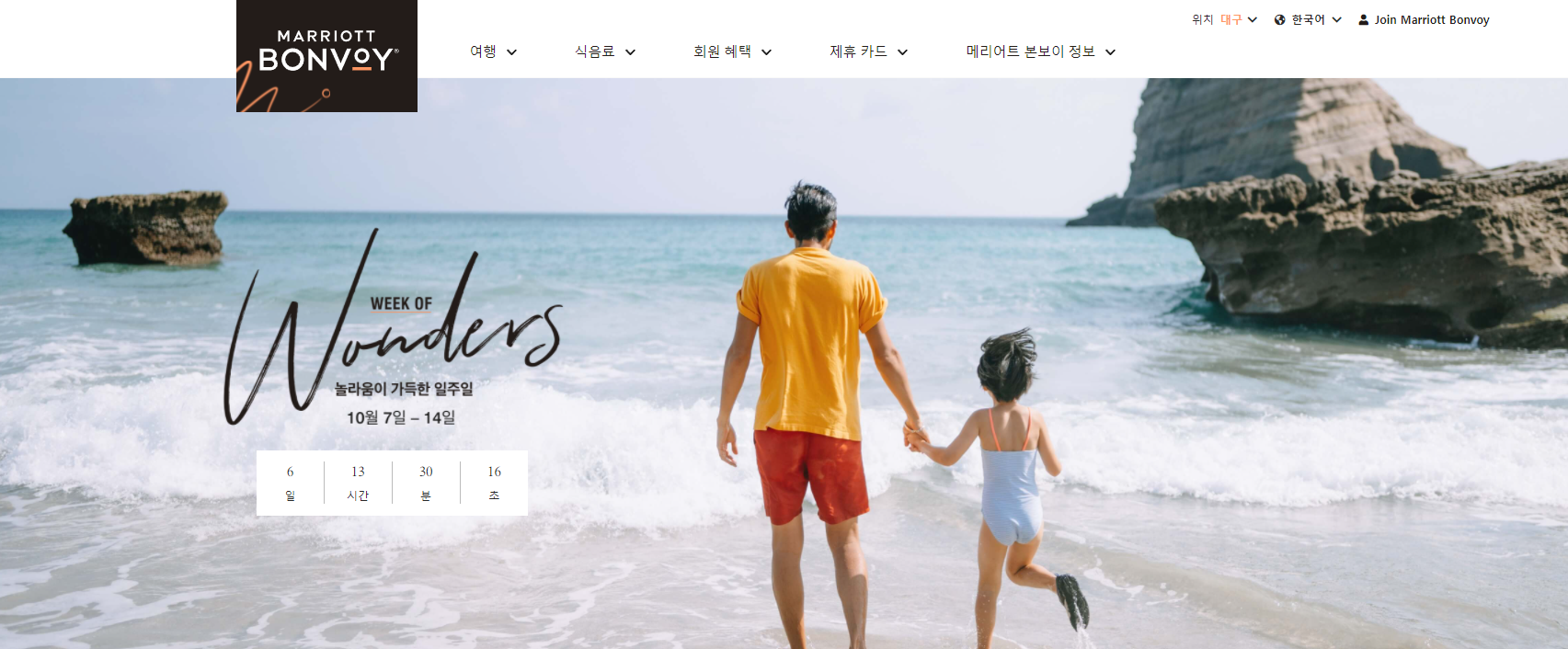 어제부터 이미 시작된 메리어트 본보이의 week of wonder 프로모션.