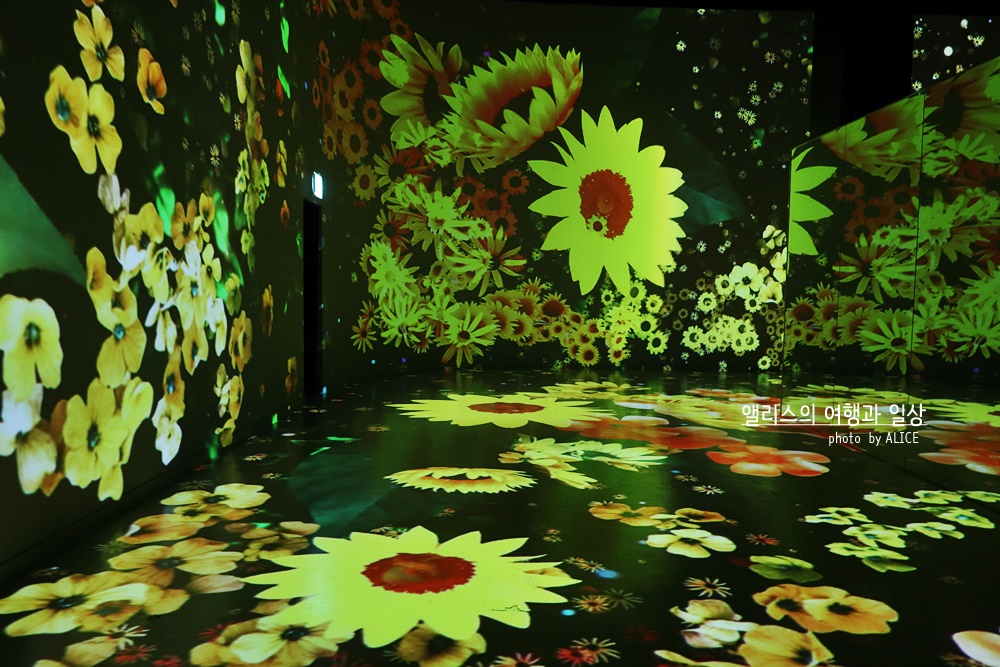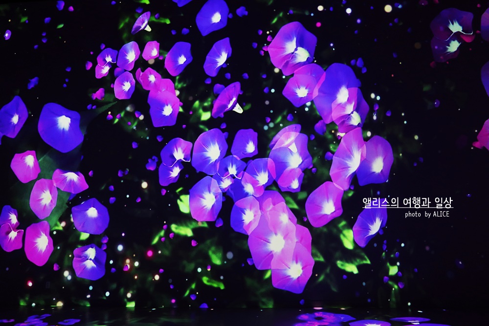 빛과 어둠의 경계에서 만들어지는 색들의 신비로움을 느낄 수 있는 플라워 가든은 미디어와 자연의 만남이라는 주제를 가장 잘 나타내는 첫번째 관이다. 이곳은 온 화면이 화려한 꽃으로 가득차 있어서 감성적인 전시를 관람할 수 있다. 자연은 가장 화려한 색상을 표현하고 인간은 그것을 표현하는 것이 쉽지 않은데 1관 플라워가든은 아주 화려한 색상을 다양한 형식으로 표현하고 있어, 자연으로부터 오는 색의 아름다움을 대리로 느낄 수 있다.