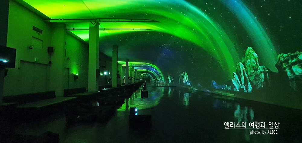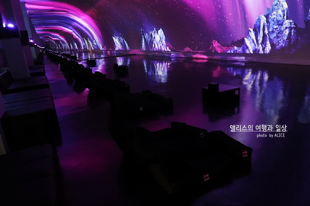 북국의 빛 오로라의 황홀함을 경험할 수 있는 공간이다. 개인적으로 가장 마음에 들었던 공간이기도 하다. 가로로 길죽한 이 공간에는 누구나 쉬어갈 수 있도록 푹신한 소파까지 배치되어있었다. 바로 앞과 머리 위의 하늘을 고개를 들어 본다면 온 곳곳은 북극의 오로라로 가득 휩싸였다.