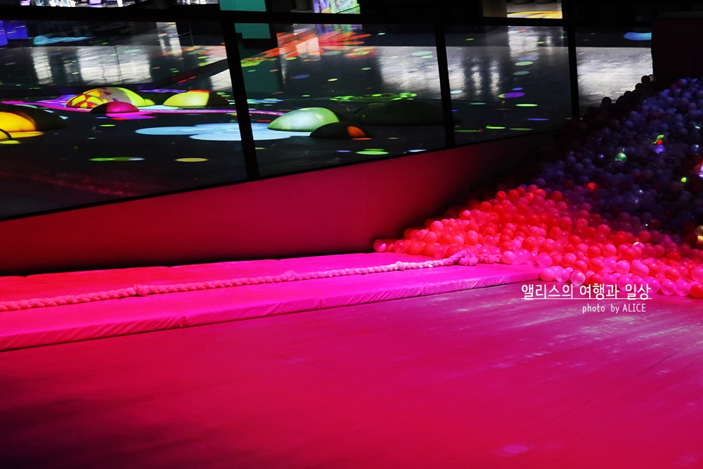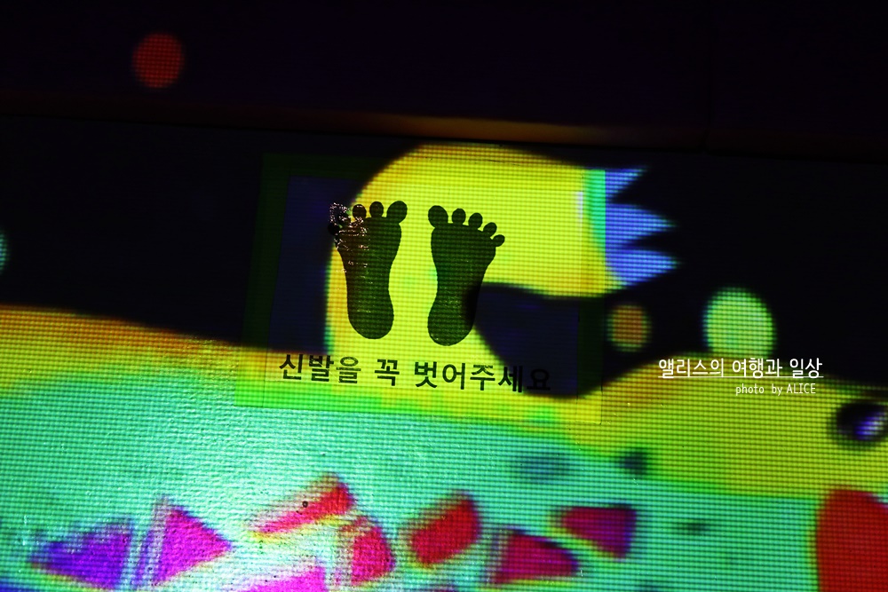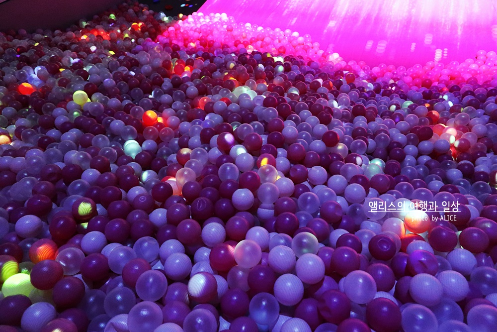이 거대한 빛으로 둘러싼 미끄럼틀은 어른들에게도 인기였다. 이곳에 들어오는 모든 어른들은 가지런히 신발을 벗고 미끄럼틀에 몸을 맡겼다. 물론 어린시절보다 키도 마음도 몸무게도 모두 커버렸지만 숨어있던 동심은 어딘가에 있기 마련. 별거 아닌 것 같은데 빛에 둘러쌓인 채 미끄럼틀을 타고 내려가는 것은 순간 흥미로운 일이었고, 공이 적은 곳에 내리찍은 내 엉덩이는 조금 아프기도 했다. ^^;; 그래도 재미있는 체험!