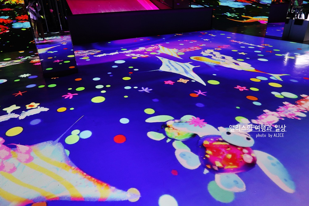 자신이 직접 그린 그림을 미디어 전시에 전송해서 직접 이렇게 화면으로 띄울 수도 있다. 모두가 함께 경험할 수 있는 체험형 미디어아트를 구현했다는 이 뮤지엄의 취지에 가장 적합한 공간이 아닌가 싶다.