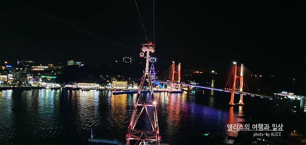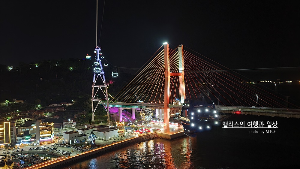 푸른 하늘을 이동하는 케이블카의 오후 모습과 달리 조명을 반짝이는 케이블카는 어둠 속을 이동하는 케이블카. 그 덕분에 여수의 밤바다도, 화려한 야경도 함께 관람이 가능했기에 늦은 밤, 또는 매직아워가 펼쳐지는 늦은 오후에 여수 해상 케이블카 탑승하는 것도 꽤 괜찮은 일이어라!