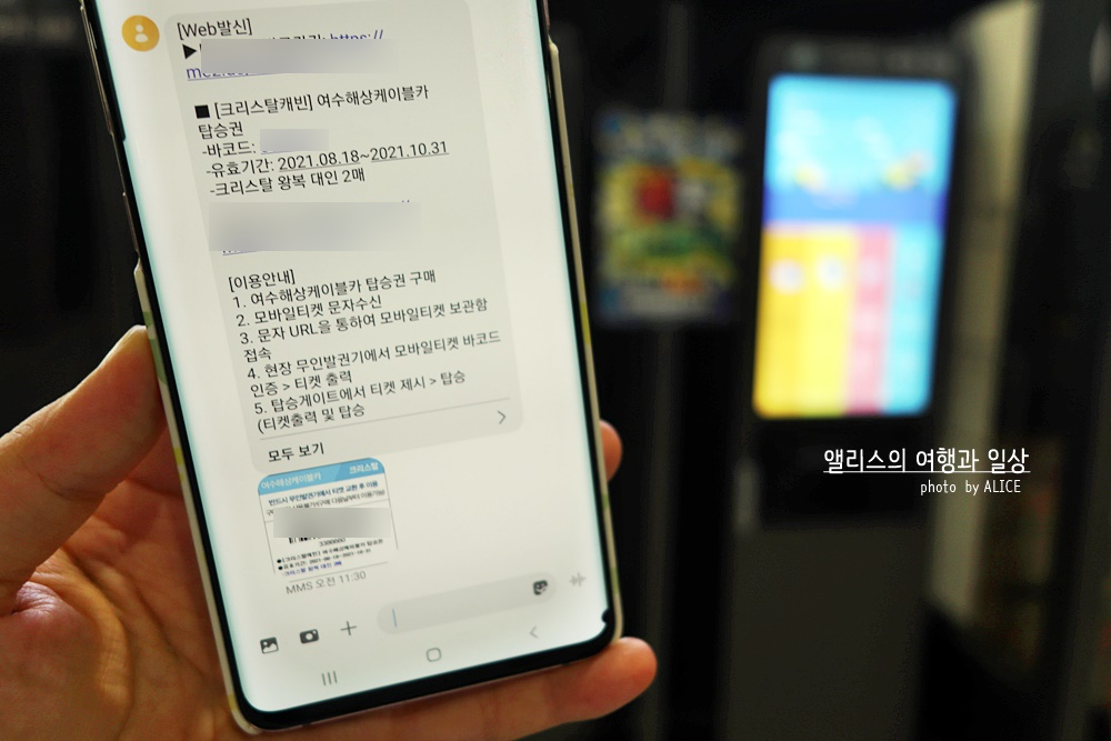 나 역시 클룩을 통해서 사전에 할인받아 여수 해상 케이블카 탑승권을 구매했던터라 바로 키오스크에서 실물표로 교환 후 바로 입장할 수 있었다. 평일 저녁이어서 그런지 탑승하는 사람들의 숫자는 매우 적었다. 그 덕분에 대기할 필요도 없이 바로 탑승할 수 있었다.