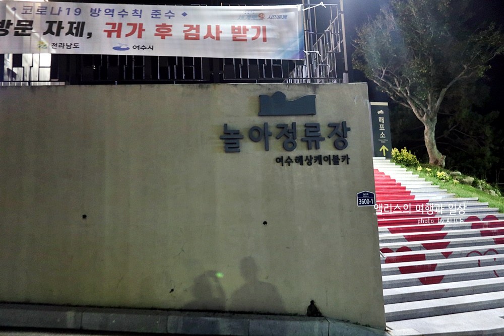 여수 해상케이블카 정류장은 놀아정류장(돌산공원) 또는 해야정류장(자산공원), 이렇게 두 군데 있다. 어느곳에 탑승해도 상관없으며, 다만, 사회적거리두기가 여전히 시행되는 시기에는 마지막 운영시간과 탑승조건을 확인해보길 추천한다. 나는 놀아 정류장에서 탑승했다.