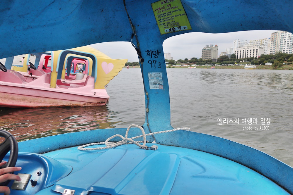 강이 흐른다는 것만으로도 우리는 그곳에서 많은 휴식을 취할 수 있다. 그 중 하나가 놀이이자 휴식(?)이 될 수 있는 오리배. 오리배를 타보기로 했다.