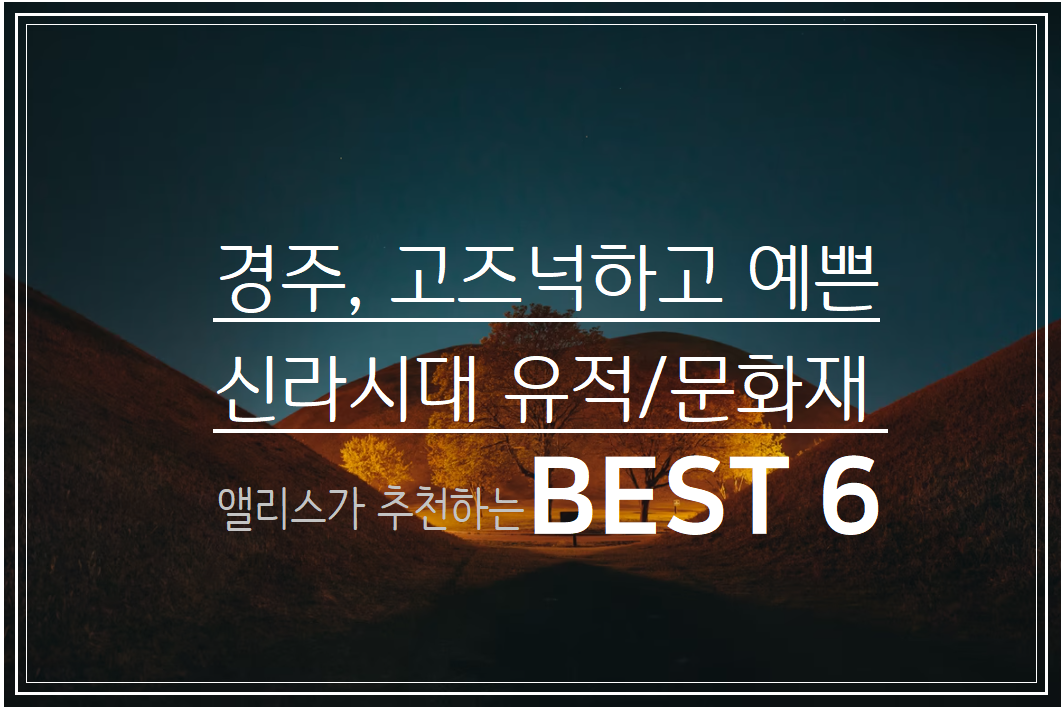 지붕없는 박물관이라고 부를 만큼 발길 닿는 곳곳이 문화유적지인 경주는 밤이면 화려하게 빛나는 유적과 낮이면 고즈넉하고 아름다운 분위기로 인기 국내여행지 중 하나다. 뛰어난 건축미를 감상하는 것은 물론 다양한 곳을 탐방하는 재미가 있는 경주. 그 경주의 수 많은 곳 중 앨리스가 직접 방문해보고 경험한 아름다운, 고즈넉한 우리 문화 유산 BEST6을 정리했다. 참고로 이 외에도 셀 수 없이 많은 유적이 있음을 잊지 않으시길~