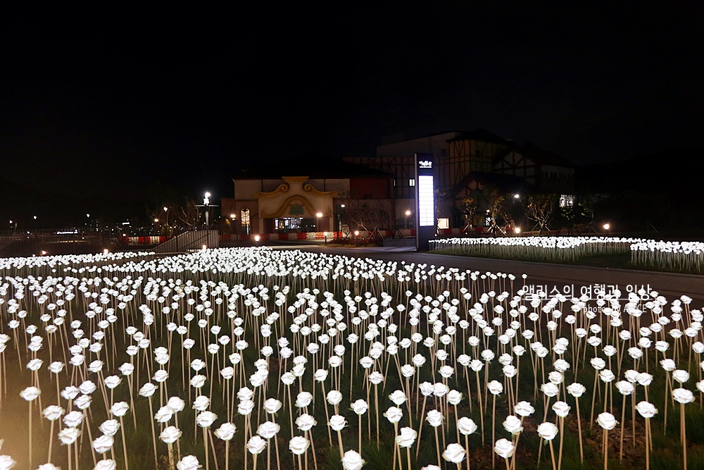 · LED 장미밭은 미식일상 정문을 기준으로 왼쪽으로 이동 후 넓은 광장에서 오른쪽 너른 계단으로 올라가면 볼 수 있다.