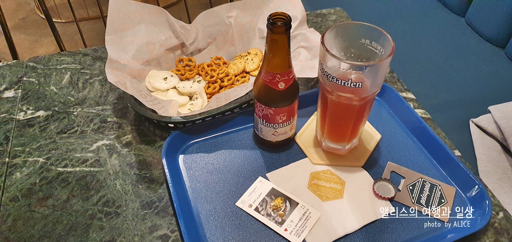 호가든로제는 달달해서 맛있다. 오랜만에 혼자만의 시간을 가지게 된 기념을 나 혼자 호가든 로제 축배를 들기로 하고 이렇게 호가든을 주문. 한모금 마시니 그 특유의 향긋한 맛에 나도 모르게 나오는 탄성 "아... 맛있어!"