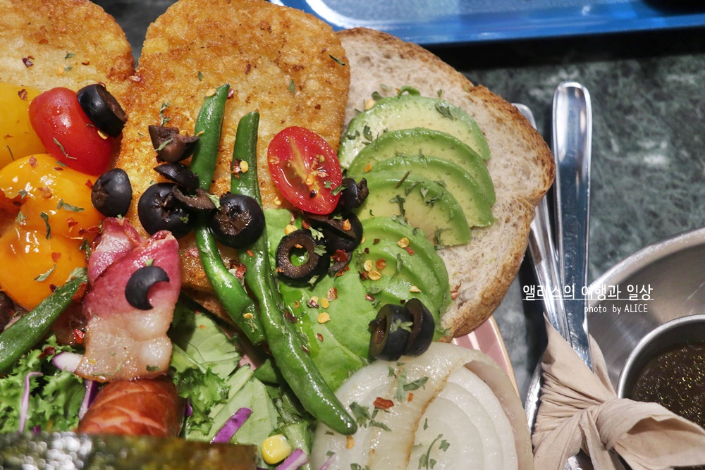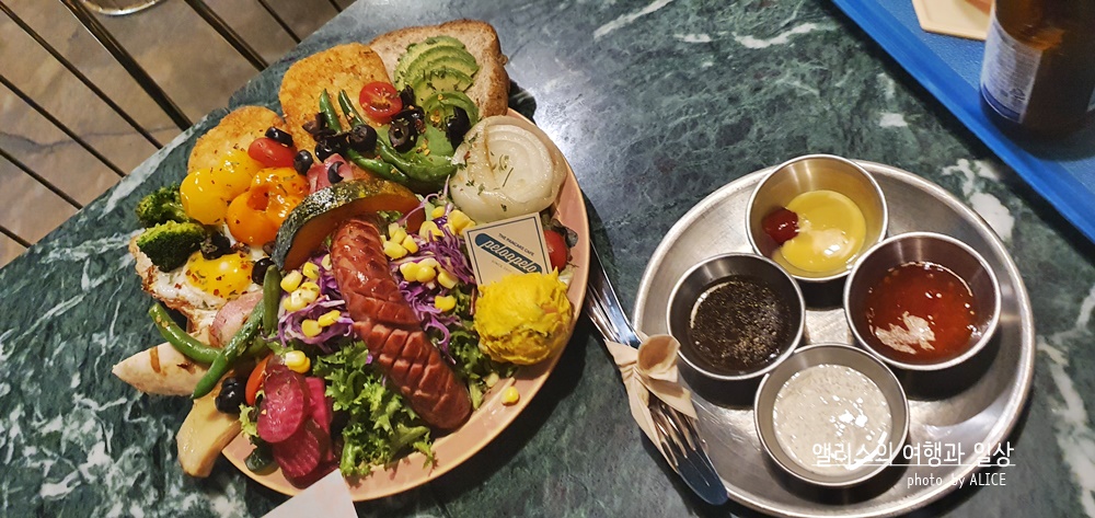 빵과 함께 나오는 브런치인데 딱 봐도 양이 장난이 아니다. 여기에 기존의 다른 식당에서 판매하는 브런치와는 확연히 차이나는 것은 "영양 밸런스"다. 탄단지 + 신선한 채소로 구성된 이 브런치는 한끼 식사로도 매우 훌륭하고 브런치로도 매우 훌륭한 조합이다.