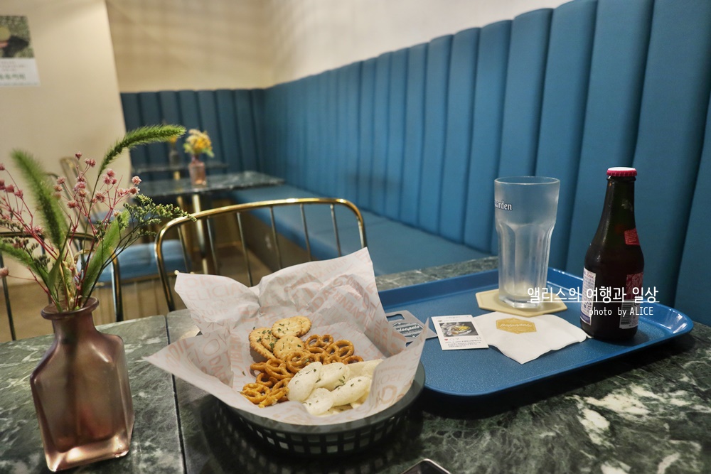 내가 주무난 메뉴는 브런치 브레드로 약 1.5인분이라고 적혀있지만 실상 2인분에 가깝다. 이걸 나는 혼자 먹기로 했다. 그냥 먹으면 섭하지. 호가든 로제 하나도 추가해주기로! 혹시 2인 이상 방문해서 내가 주문한 메뉴를 먹는다면 브런치비어세트로 주문하시길 추천!