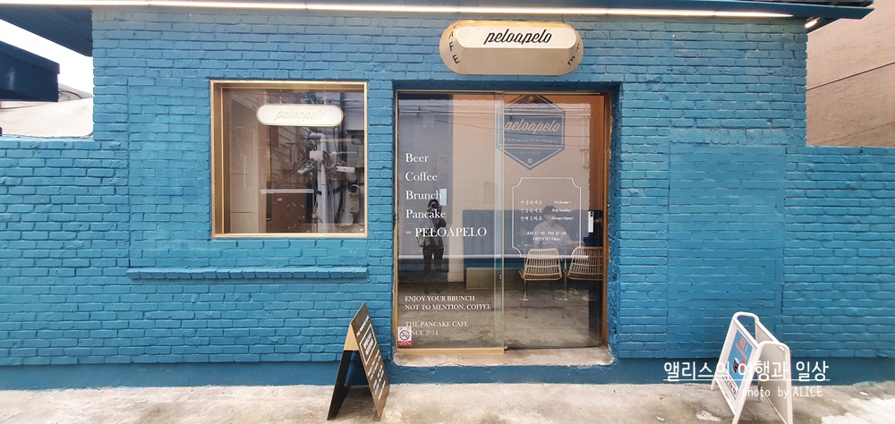 사실 페로어페로 광안리점은 그냥 대로변에서 보이진 않는다. 스타벅스 광안리점을 기준으로 왼쪽 골목길에 들어가야만 이 진한 에머랄드빛 푸른 벽돌이 보이고 그곳이 페로어페로 광안리점이다.