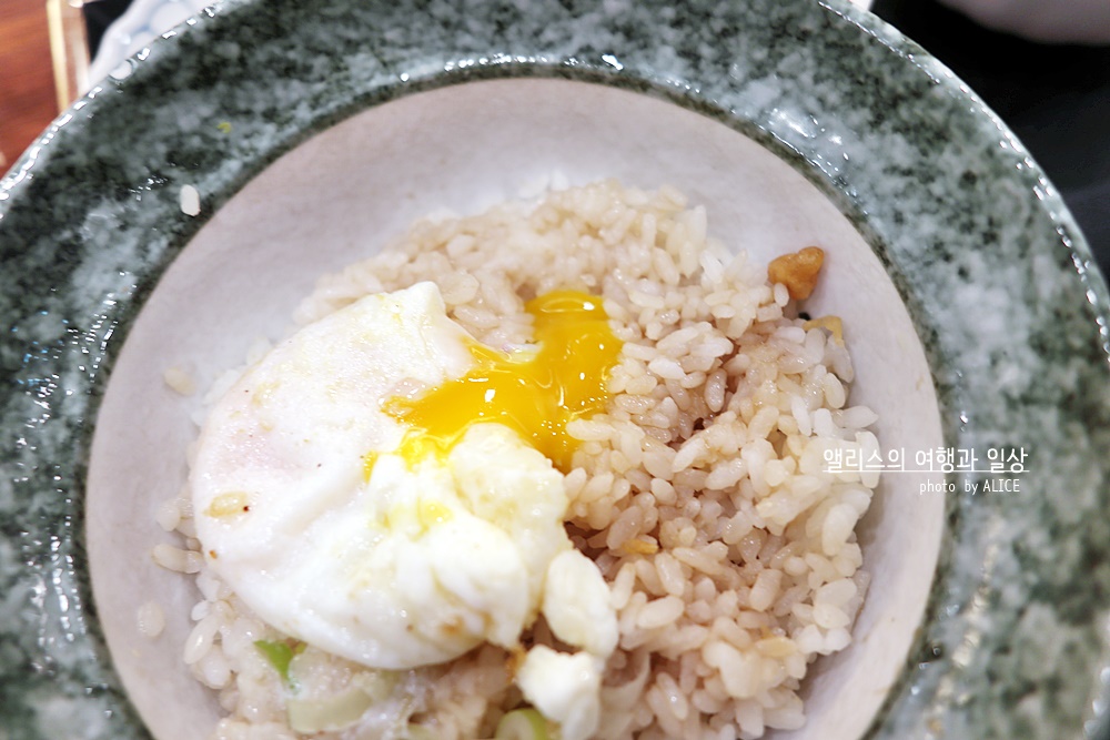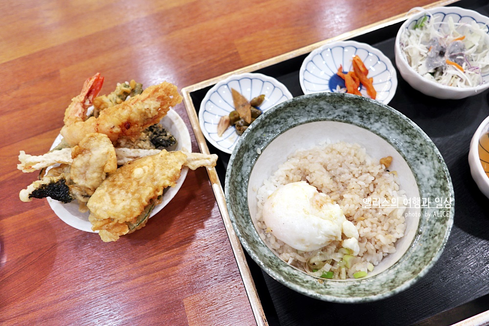 9,500원치고는 구성은 괜찮은 편이다. 특히 왕새우튀김도 마음에 들고, 여기에 온천계란까지 있어서 딱히 추가 양념을 넣지 않아도 밥에 있는 기본양념과 잘 어울렸다.