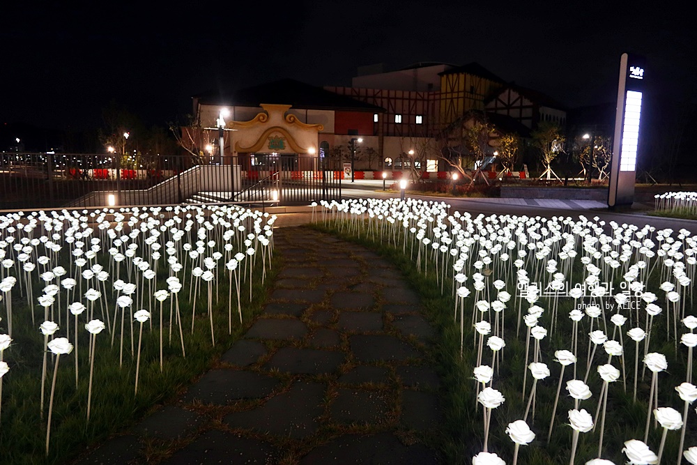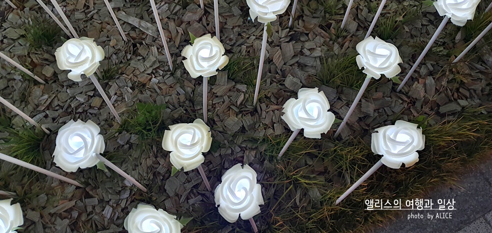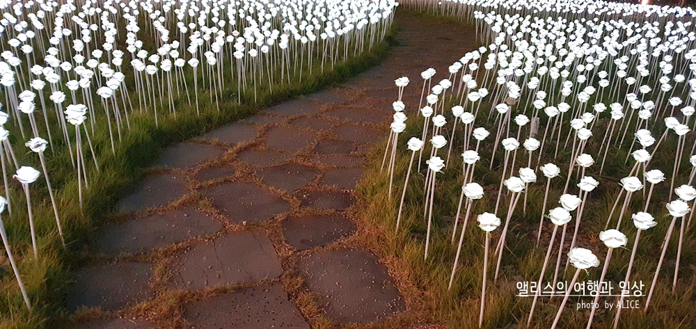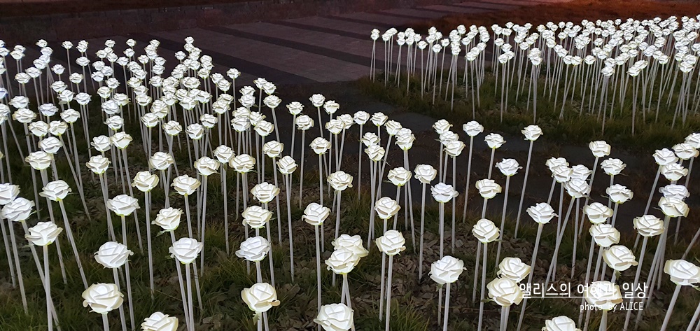 LED 장미 밭 사이사이에는 이렇게 걸어갈 수 있는 길이 나 있기 때문이 사진을 잘 찍으면 마치 LED 장미에 파묻힌 기분이 들도록 사진을 찍을 수 있다.