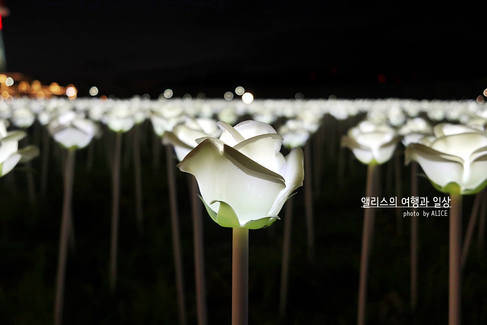 정문에서 (오시리아 역 방향) 왼쪽으로 계속 걸어가면 광장같은 곳이 나온다. 그 광장 오른쪽에는 너른 계단이 있는데 그 계단으로 계속 올라가면 LED 장미공원을 만날 수 있다. 밤이되면 화려하게 피어나는 LED 장미는 늦은 저녁이 되어서 빛을 발한다.