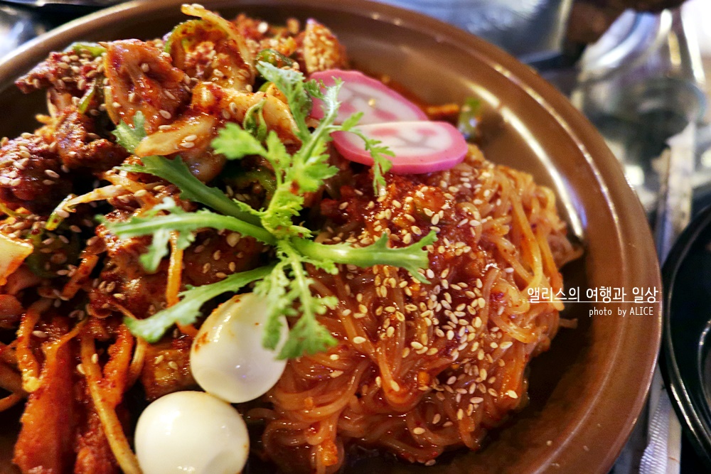 통골뱅이 크기는 마치 메추리알 크기 뺨친다. 그러니 씹을수록 씹을맛이 난다. 쫄깃한다 그 안에 고소함도 함께 느껴진다. 같이 나온 쫄면사리를 잘 비벼서 통골뱅이나 같이 무쳐진 황태포와 먹어도 좋다. 같이 비벼진 채소는 물론이고 어묵말린 것인지 진미채인지 약간 애매했지만 어쨌든 쫄깃한 식감의 추가된 그것도 좋았다. (그 쫄깃한 채가 뭔지 물어나볼걸. 매번 물어보는 것은 잊고 먹는데만 집중한다;;;;)