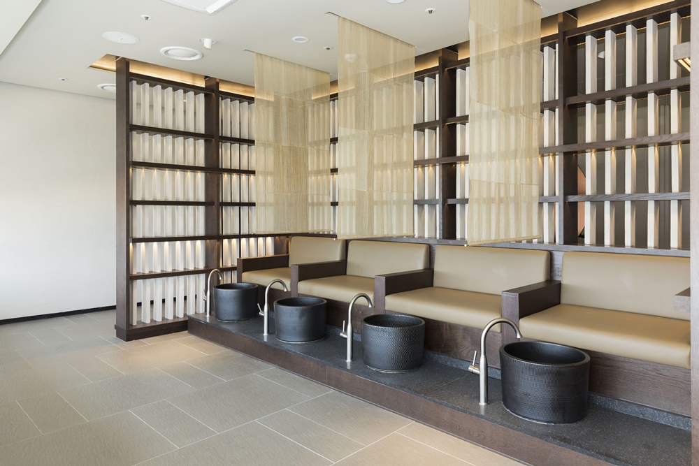 · 무릎 밑까지 푹 담가주는 홍삼 족욕은 대치본점, 명동점, 해운대점 3개 매장에 모두 있다.