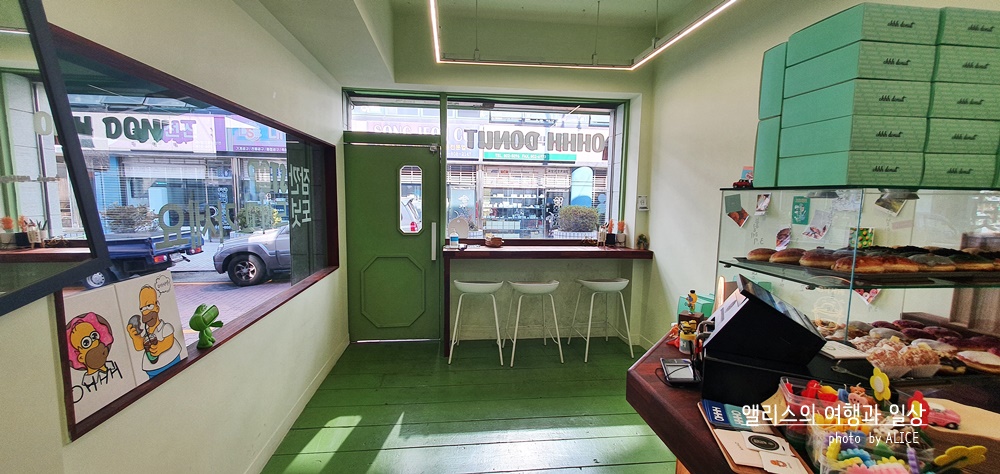 규모가 정말 작은 도넛츠 가게다. 그러므로 내부에서 도넛츠를 먹을 수 있는 공간도 협소하다. 바 테이블이 있으니 이곳에서 취식 가능하겠지만 적어도 내가 알기론 이곳에 방문하는 대부분의 사람들은 테이크아웃을 한다고.