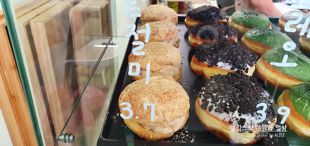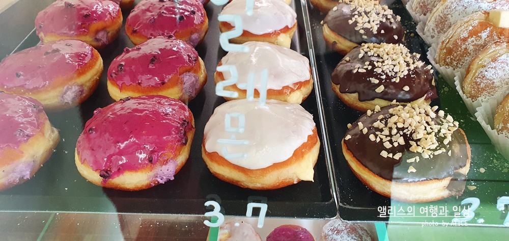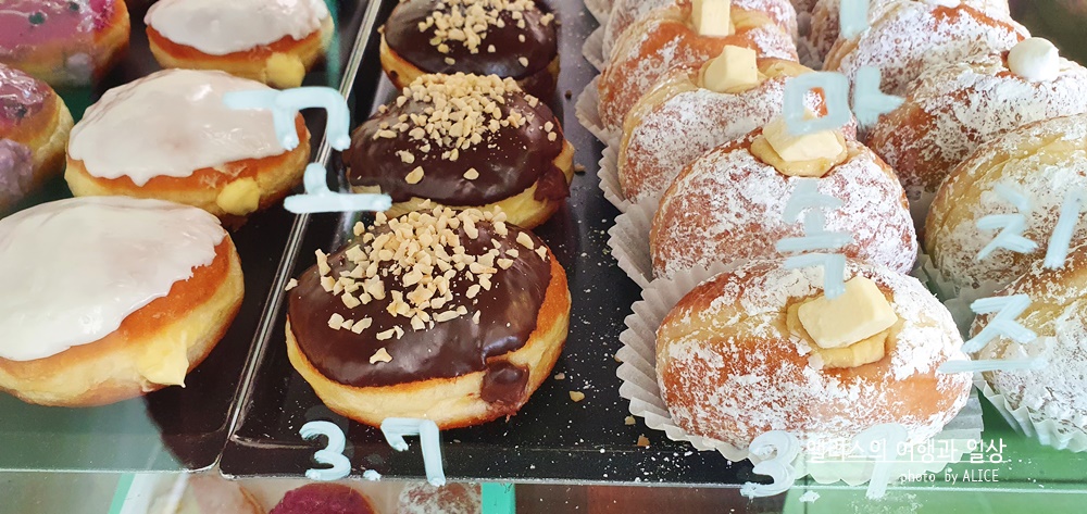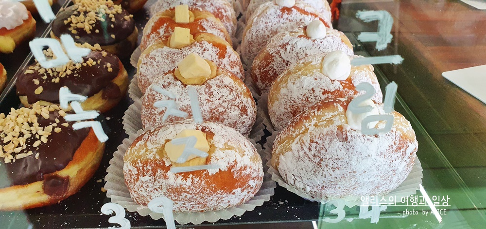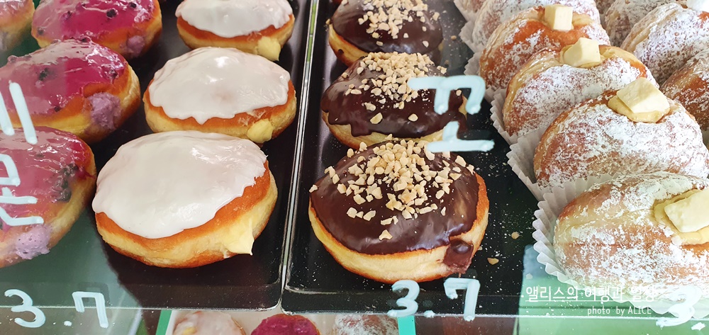 특히 크림류의 도너츠는 냉장고나 냉동실에 넣고 시원하게, 살짝 얼려서 먹어보자. 아주 잘 어룰린다. 입안에서 크림이 살살 녹으면서 먹는 도너츠는 약간 별미에 가깝다.