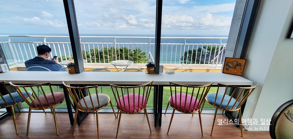 워낙 유명한 곳이고 인기가 많은 곳이라 사실 평일에도 가끔 주차장이 만차이기도 하다. 그렇게 되면 제법 먼 곳에 주차를 해야하는 단점과 또 근처에 다다르면 길이 워낙 좁아서 여기도 초보는 운전하기가 조금 고달플 수 있다. 그건 단점이지만 루프탑이든 내부든 어디에 있듯 탁 트인 기장 바다를 전경으로 달콤한 디저트를 먹는 시간을 보낼 수 있어서 꽤나 마음에 들어하는 카페 중 하나다.