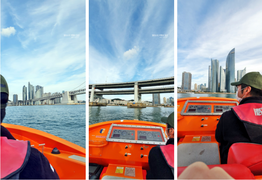 요트투어는 우리가 알고 있는 그 요트에 50분 정도 탑승하며 마린시티, 광안리등을 둘러보는 것이고 (물론 속도는 느리다.) 오션투어는 제트보트로 요트보다는 5~6배 빠른 속도이지만 물이 튀지 않고 스피드를 즐길 수 있어 요트보다 더 ㅁ낳이 여러군데를 둘러볼 수 있다. 특히 이 빠른 속도 덕분에 탑승시간은 50분으로 요트와 비슷하지만 저 멀리 오륙도까지 둘러볼 수 있는 것이 특징!